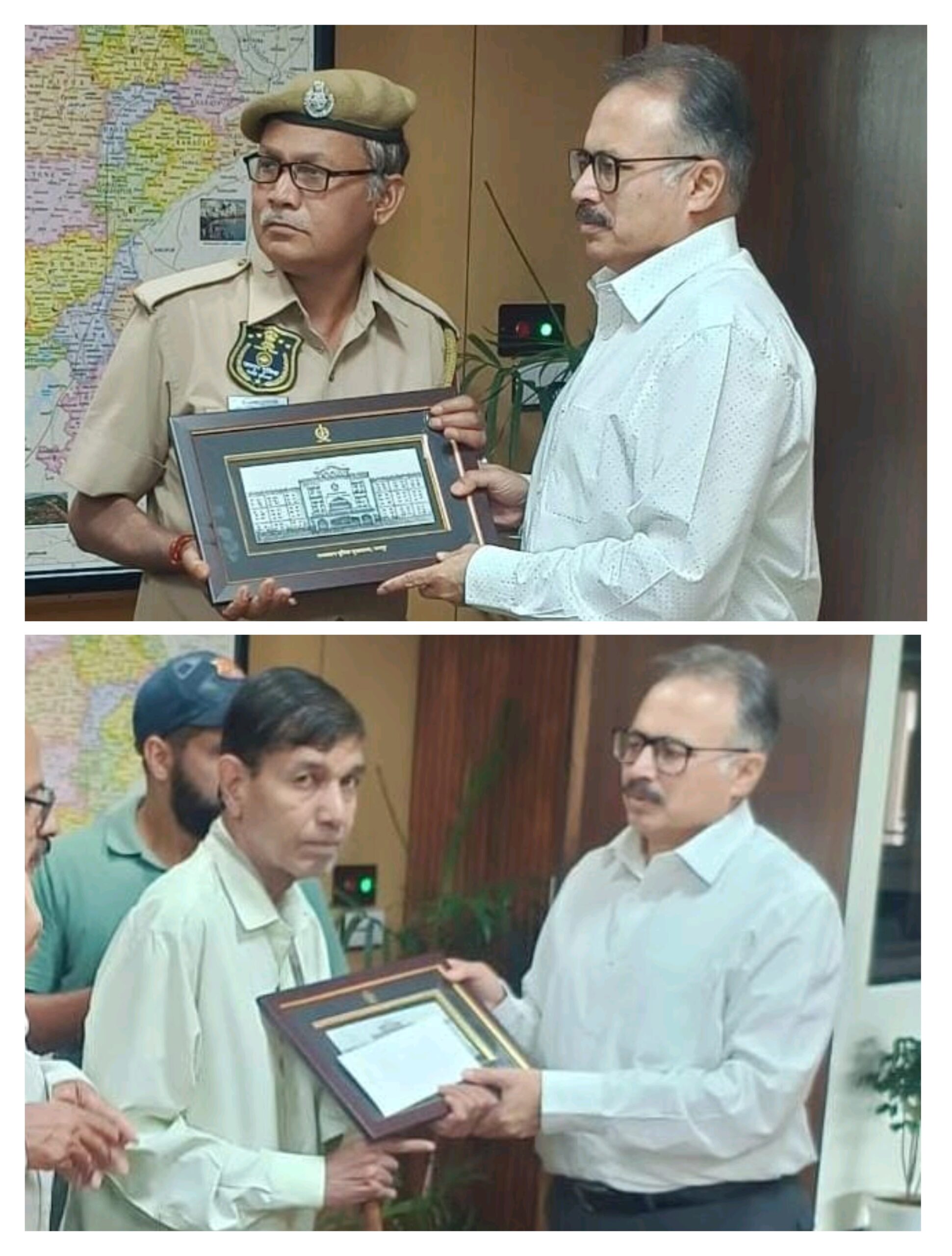 सेवानिवृत्ति के अवसर पर संवेदनशील पहल करते हुए डीजीपी राजीव कुमार शर्मा ने अवकाश के बावजूद दोनों जवानों को अपने कक्ष में आमंत्रित किया और उनके कर्तव्यनिष्ठ सेवाकाल की सराहना की।