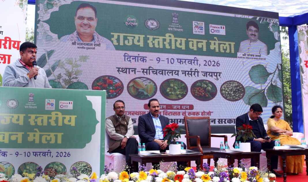 जयपुर 09 फरवरी। वन, पर्यावरण एवं जलवायु परिवर्तन मंत्री संजय शर्मा ने सोमवार को प्रकृति संरक्षण एवं पर्यावरण जागरूकता को बढ़ावा देने के उद्देश्य से 9 एवं 10 फरवरी 2026 को सचिवालय नर्सरी, जयपुर में आयोजित हो रहे राज्य स्तरीय वन मेले का उद्घाटन किया।