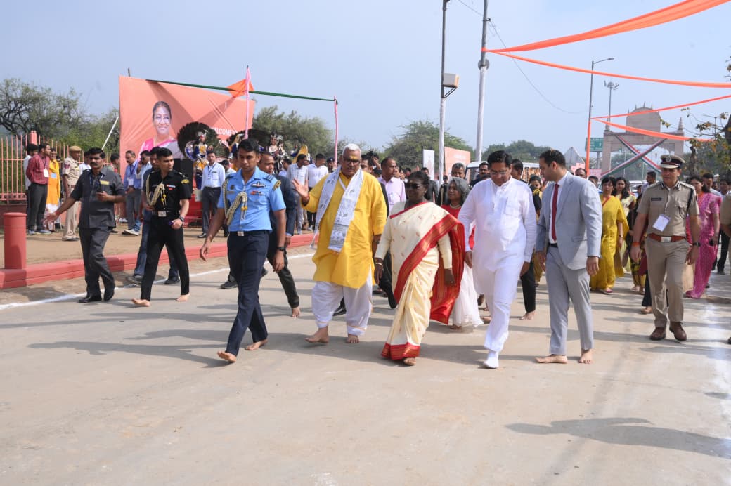 राष्ट्रपति द्रौपदी मुर्मु ने राजस्थान सीमा में प्रवेश के बाद श्रद्धा भाव से पैदल परिक्रमा की। लोक कलाकारों की भावपूर्ण प्रस्तुतियों को देखकर वे भाव-विभोर नजर आईं और कलाकारों का उत्साहवर्धन भी किया।