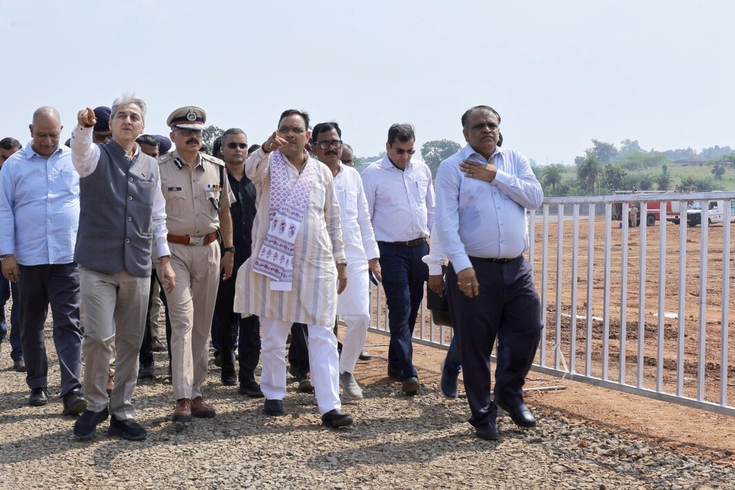 NCR SANDESH / जयपुर। मुख्यमंत्री भजनलाल शर्मा शनिवार को बांसवाड़ा के नापला पहुंचे जहां उन्होंने प्रधानमंत्री नरेन्द्र मोदी के 25 सितंबर को प्रस्तावित दौरे की तैयारियों का जायजा लिया। इस दौरान उन्होंने सभास्थल, हेलीपैड एवं पार्किंग स्थल सहित अन्य स्थानों का निरीक्षण कर संबंधित अधिकारियों को जरूरी दिशा-निर्देश प्रदान किए। शर्मा ने कार्यक्रम स्थल पर तैयार किए जाने वाले डोम तथा मंच के स्थान का निरीक्षण करते हुए सुरक्षा इंतजाम सहित अन्य व्यवस्थाओं के बारे में स्थानीय अधिकारियों से जानकारी ली। उन्होंने तैयारियों की समीक्षा करते हुए अधिकारियों को निर्देश दिए कि इस आयोजन को सफल बनाने के लिए सभी व्यवस्थाएं समयबद्ध रूप से सुनिश्चित की जाए तथा इस बात का विशेष ध्यान रखा जाए कि आगंतुकों को किसी प्रकार की असुविधा न हो।