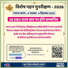 NCR SANDESH / जयपुर, 26 नवम्बर। भारत निर्वाचन आयोग के निर्देशानुसार प्रदेशभर में मतदाता सूचियों के विशेष गहन पुनरीक्षण (एसआईआर)–2026 का कार्य तेजी और पारदर्शिता के साथ प्रगति पर है। 4 नवम्बर से प्रारंभ हुए इस अभियान के तहत बूथ लेवल अधिकारियों द्वारा घर-घर जाकर गणना प्रपत्रों का संग्रहण, सत्यापन और डिजिटाइजेशन का कार्य निरंतर जारी है।