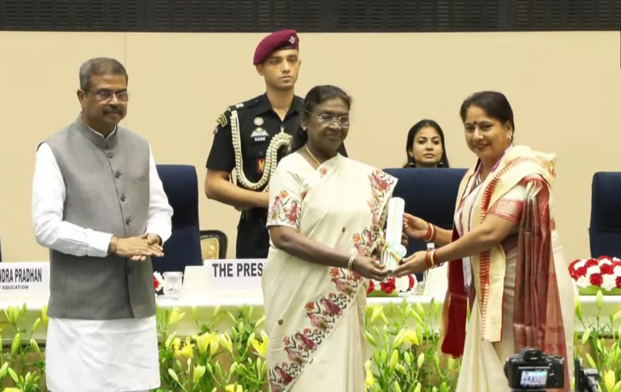 ncr sandesh / जयपुर, 5 सितंबर। नई दिल्ली के विज्ञान भवन में शुक्रवार को राष्ट्रीय शिक्षक दिवस के अवसर पर आयोजित भव्य सम्मान समारोह में राष्ट्रपति द्रौपदी मुर्मू ने देशभर से चयनित 45 उत्कृष्ट शिक्षकों को राष्ट्रीय शिक्षक पुरस्कार से सम्मानित किया। समारोह में राजस्थान के राजकीय बालिका उच्च माध्यमिक विद्यालय टपूकड़ा, अलवर की प्रिंसिपल नीलम यादव को भी राष्ट्रीय शिक्षक पुरस्कार से सम्मानित किया गया। प्रतिवर्ष राष्ट्रीय स्तर पर दिए जाने वाले इन पुरस्कारों का उद्देश्य शिक्षा के क्षेत्र में उत्कृष्ट कार्य करने वाले शिक्षकों को उनकी पहचान और सम्मान दिलाने के साथ-साथ अन्य शिक्षकों को प्रेरित करने का भी होता है ताकि शिक्षा की गुणवत्ता में सुधार के साथ-साथ विद्यार्थियों के समग्र विकास में शिक्षक और अधिक योगदान देने की प्रेरणा ले सकें।
