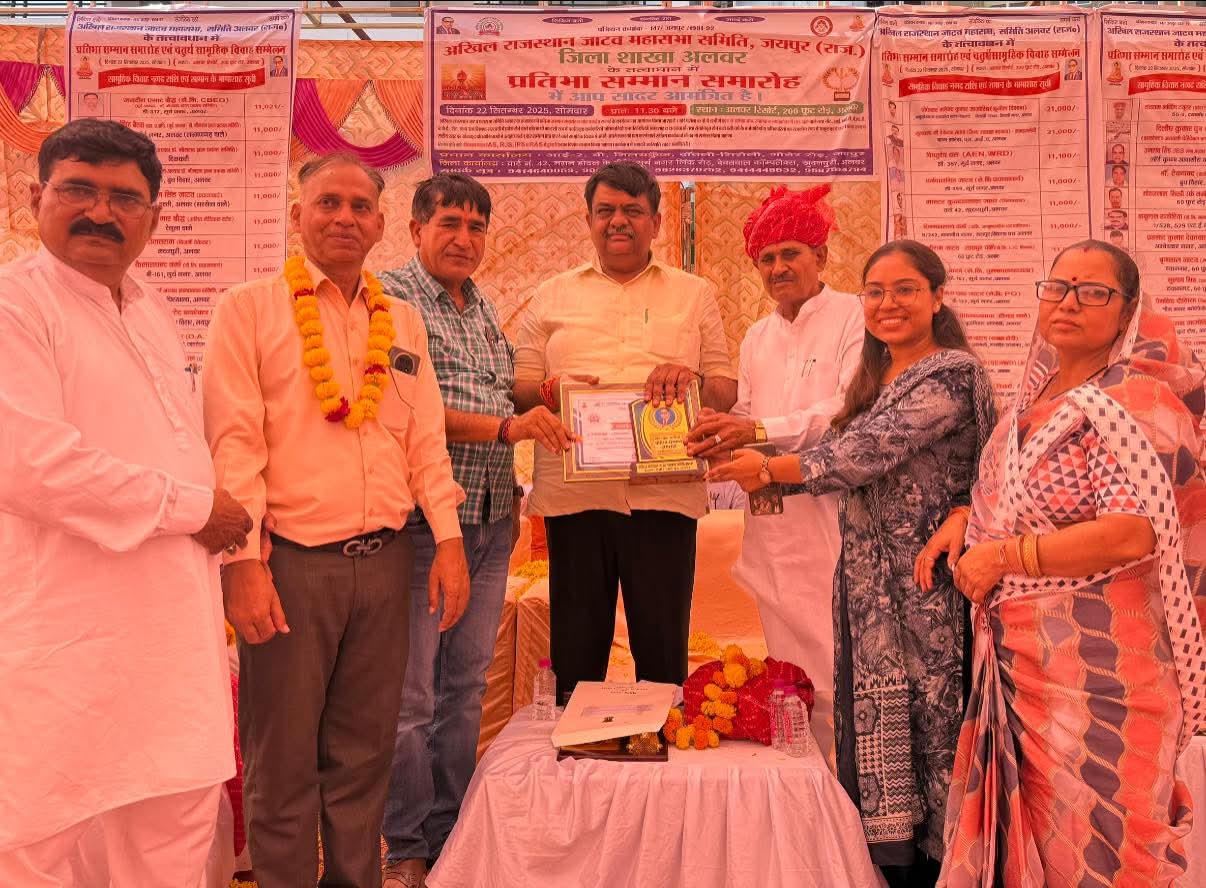 NCR SANDESH /जयपुर, 22 सितंबर। वन एवं पर्यावरण राज्यमंत्री (स्वतंत्र प्रभार) संजय शर्मा ने सोमवार को अखिल राजस्थान जाटव महासभा समिति अलवर के तत्वाधान में आयोजित प्रतिभा सम्मान समारोह एवं गोद-भराई व सगाई कार्यक्रम में शिरकत कर समाज के 400 प्रतिभावान बालक-बालिकाओं को सम्मानित किया।
