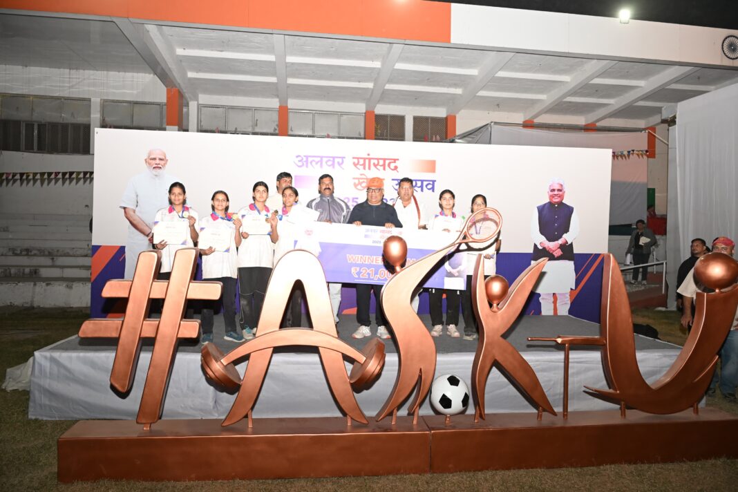 NCR SANDESH / जयपुर, 15 नवम्बर। अलवर सांसद खेल उत्सव के तहत इंदिरा गांधी स्टेडियम में आयोजित फाइनल मुकाबलों में रोमांचक मैच आयोजित हुए, विजेता खिलाडियों को इनामी राशि प्रदान कर व मेडल पहनाकर केंद्रीय वन मंत्री भूपेन्द्र यादव, वन राज्यमंत्री संजय शर्मा एवं जनप्रतिनिधिगणों तथा विख्यात रेसलर योगेश्वर दत व बबीता फोगाठ ने खिलाडियों को सम्मानित किया।